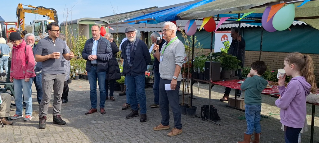 De Groene Markt van afgelopen zaterdag 22 trok veel belangstelling van leden en niet-leden en leverde de bezoekers veel tips en kennis op voor een toekomstbestendige inrichting van tuinen en bospercelen. Op het voorveld van De Borkeldzuivel waren onder het motto ‘het bos is de baas en wij zijn er te gast’ door de werkgroep Bos en natuur en door diverse vrijwilligers 18 kramen ingericht voor organisaties en ondernemingen, waar belangstellenden veel van hun gading konden vinden aan informatie en over geschikte planten en bomen die goed gedijen in een duurzame omgeving op De Borkeld. Om 11 uur opende wethouder Beens de markt. Hij verwees naar de toekomstige generaties voor wie de natuur eveneens op een goede manier in stand moet blijven.