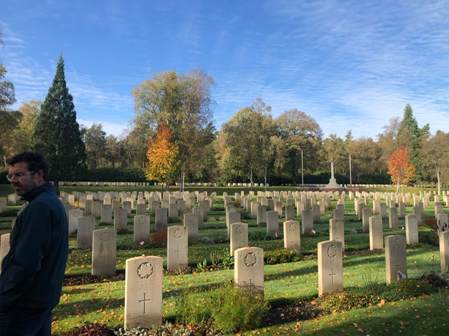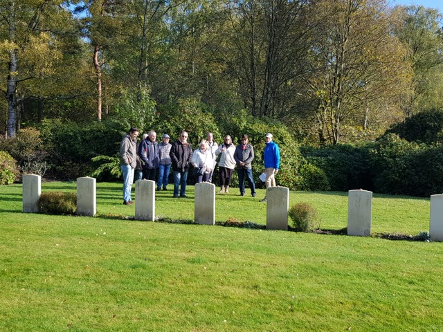 Na het gezamenlijk zien van een film over de begraafplaats werd de totale groep in vieren gesplitst. De 4 kleine groepen kregen elk onder leiding van een gids een rondleiding op de begraafplaats. Bij een aantal graven werd stilgestaan en werd de achtergrond van de gesneuvelde militair toegelicht.